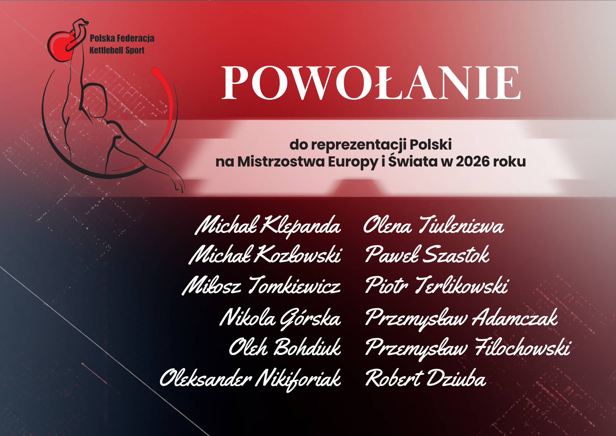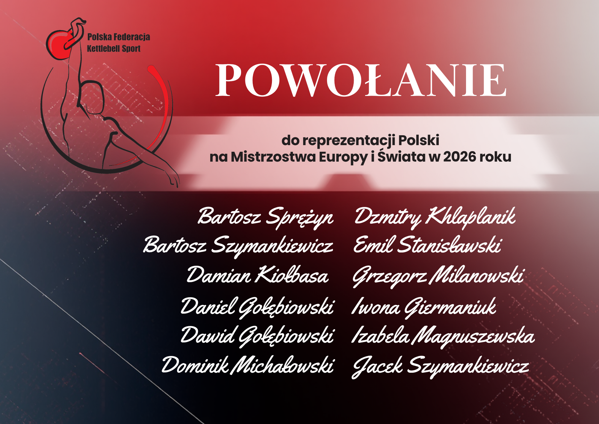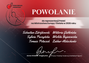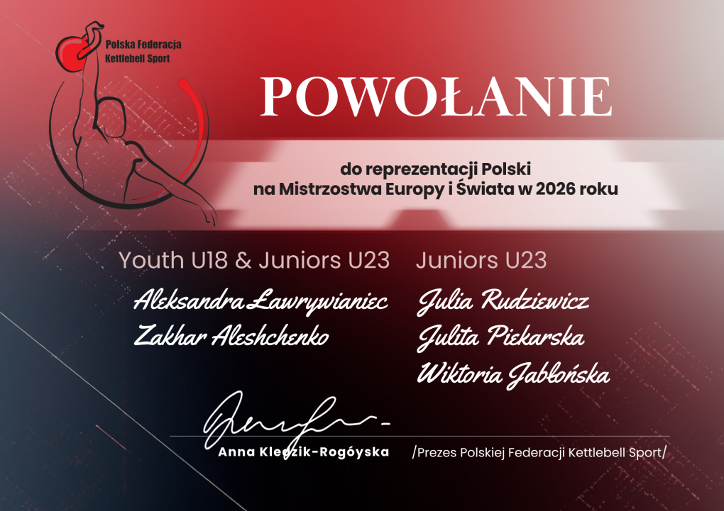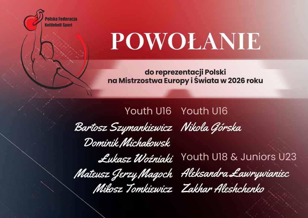 Kadra Polski Przedstawiamy listę osób Polskiej Federacji Kettlebell Sport powołanych do reprezentacji Polski na rok 2026