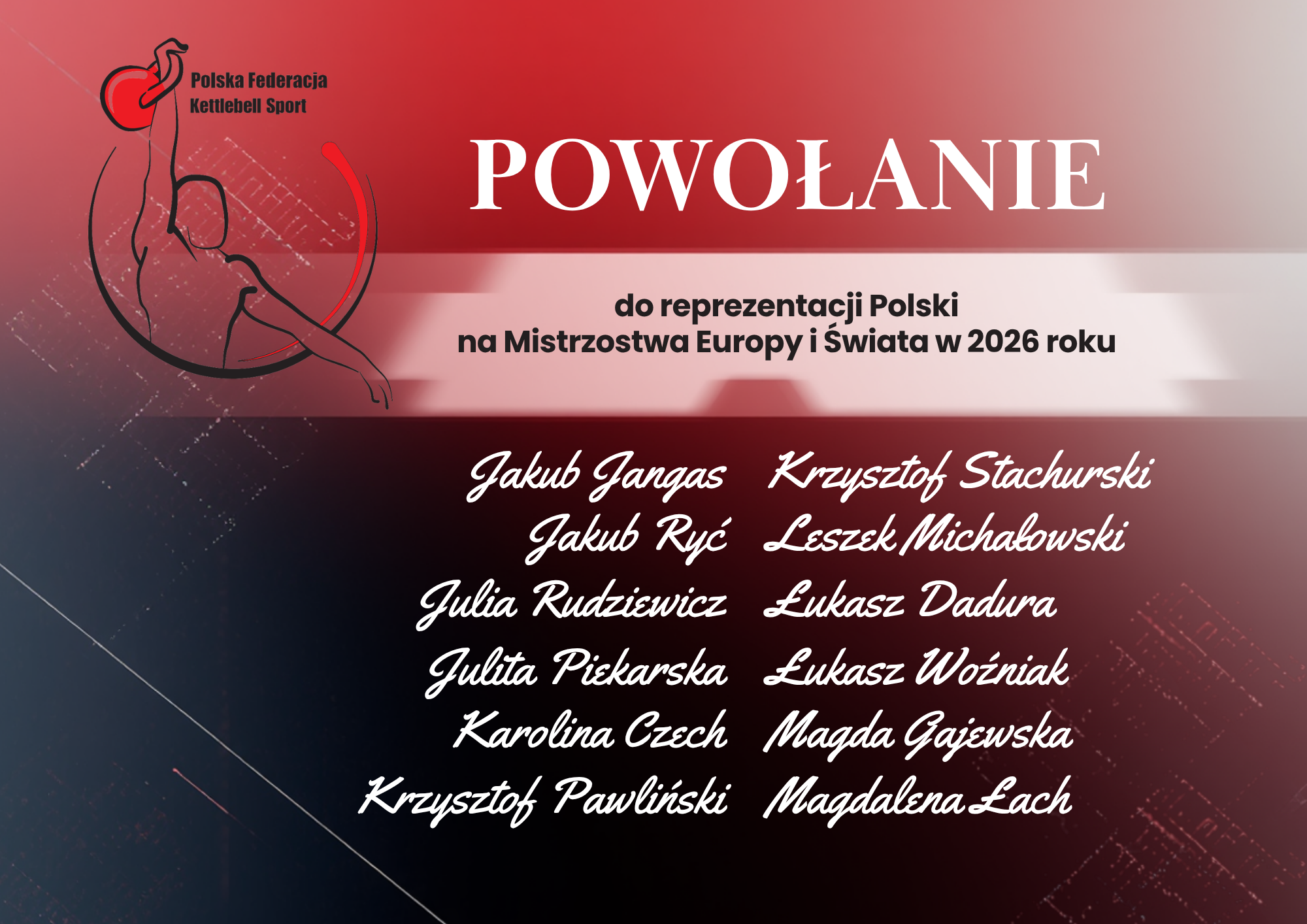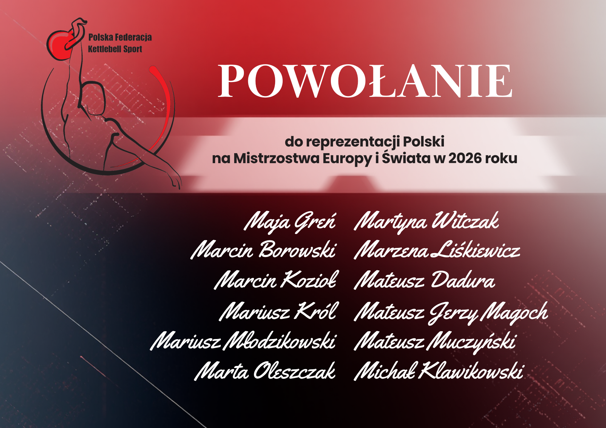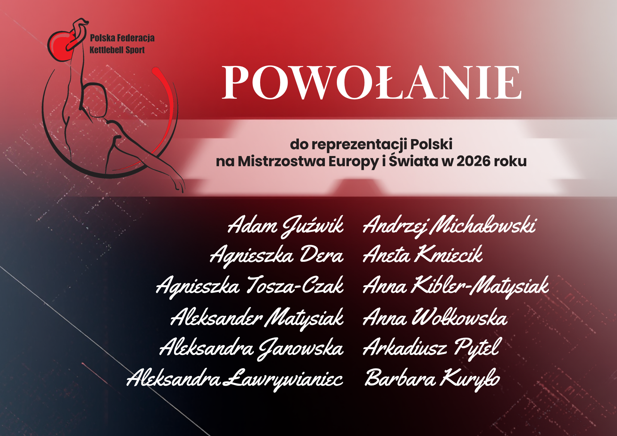 Kadra Polski Przedstawiamy listę osób Polskiej Federacji Kettlebell Sport powołanych do reprezentacji Polski na rok 2026